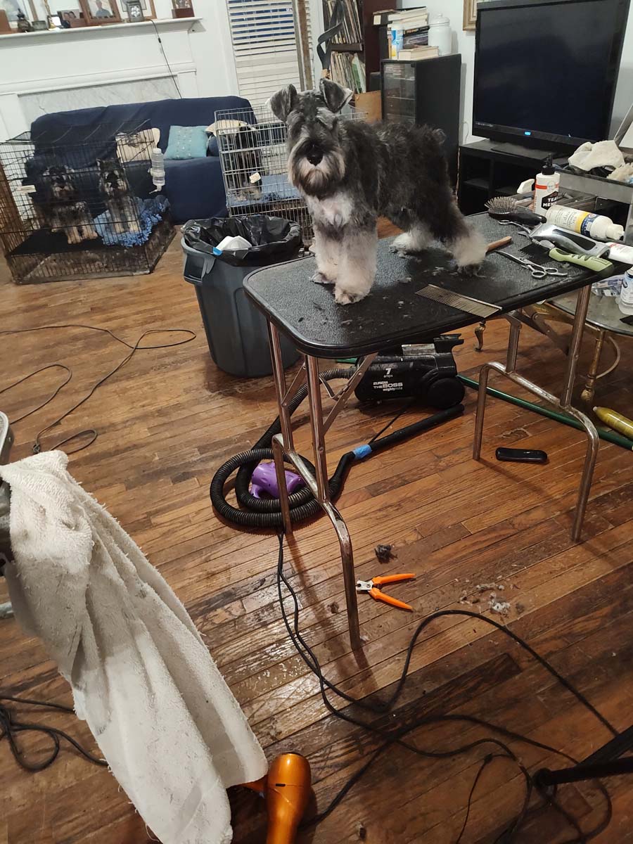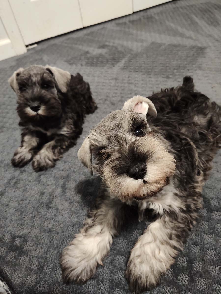 Bonnie on left and Mabel who is 13 weeks old on right and a salt and pepper.doing well on house training . Both have terrific personalities
